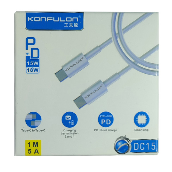 Кабель Konfulon DC15, Type-C to Type-C, 1m, 5A, 100W, White