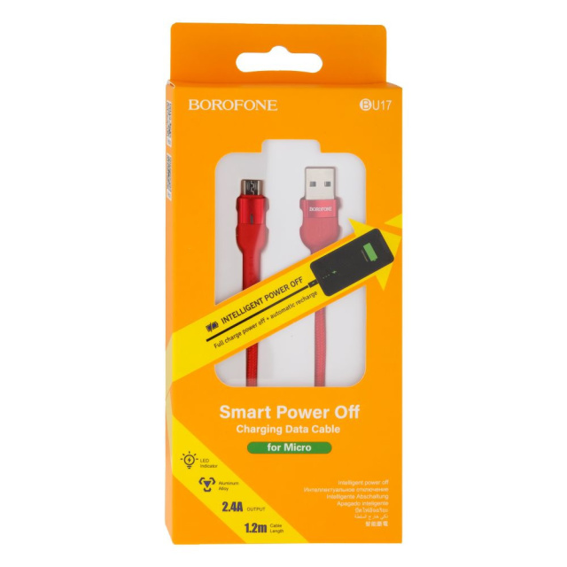 Кабель Borofone BU17 Starlight, Micro, 1.2m, 2.4A, Red