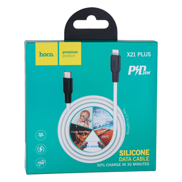 Кабель Hoco X21 Plus, Type-C to Lightning, 1m, PD 20W, White