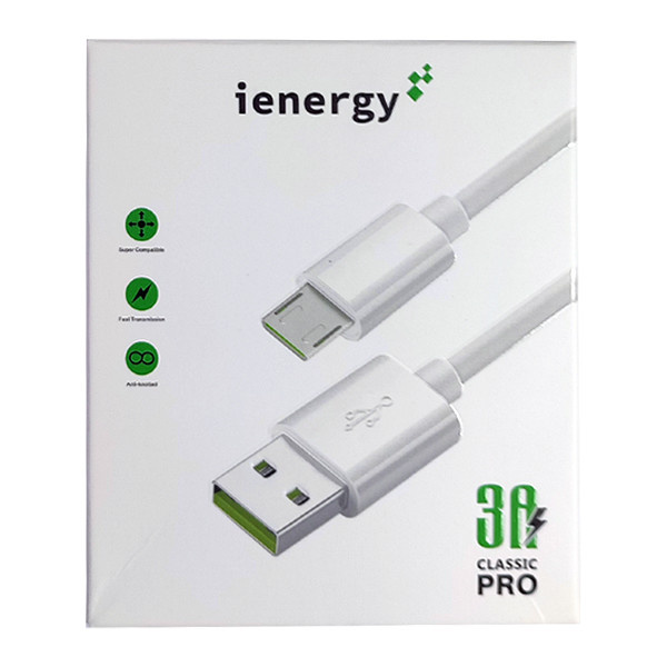 Кабель iEnergy Classic Pro, Micro, 1m, 3A, White