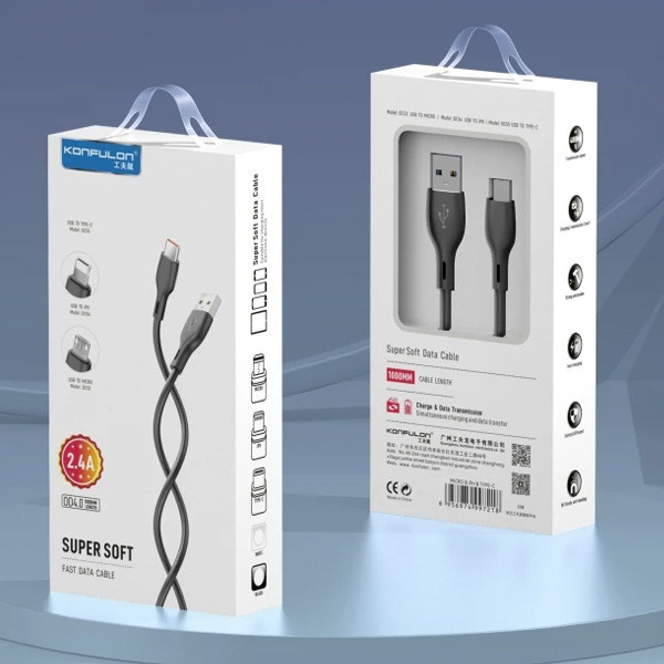 Кабель Konfulon DC53, Micro, 1m, 2.4A, White