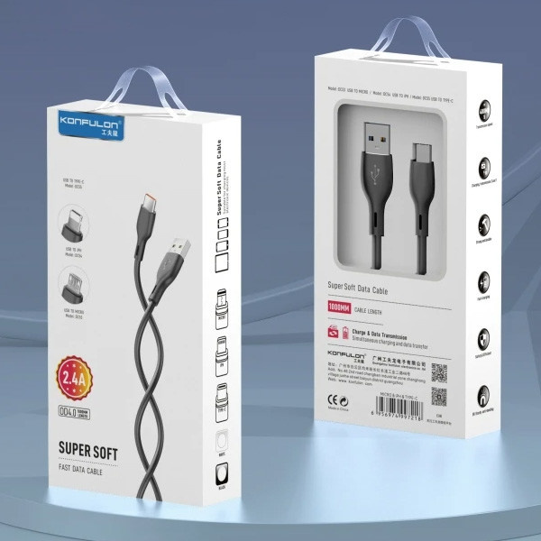 Кабель Konfulon DC55, Type-C, 1m, 2.4A, White